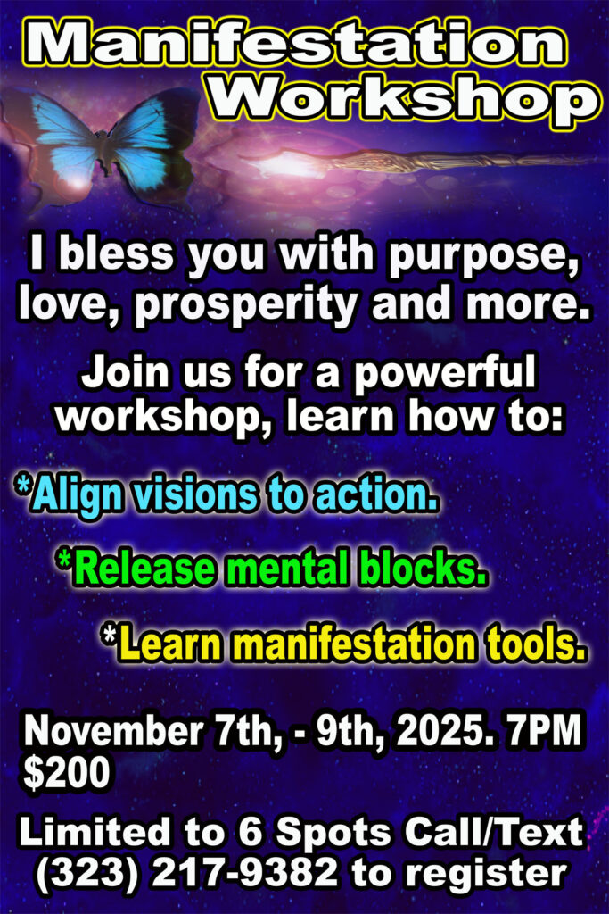 Hi, and many blessings upon you. The Manifestation Workshop is a transformative and positive experience! Helping individuals discover and manifest their true purpose can be an incredibly empowering and fulfilling experience. It’s common for people to feel lost or uncertain about their path, especially when faced with life-changing events or transitions. The workshop provides an opportunity for self-discovery and exploration, and it can make a significant difference in guiding participants toward clarity and fulfillment.